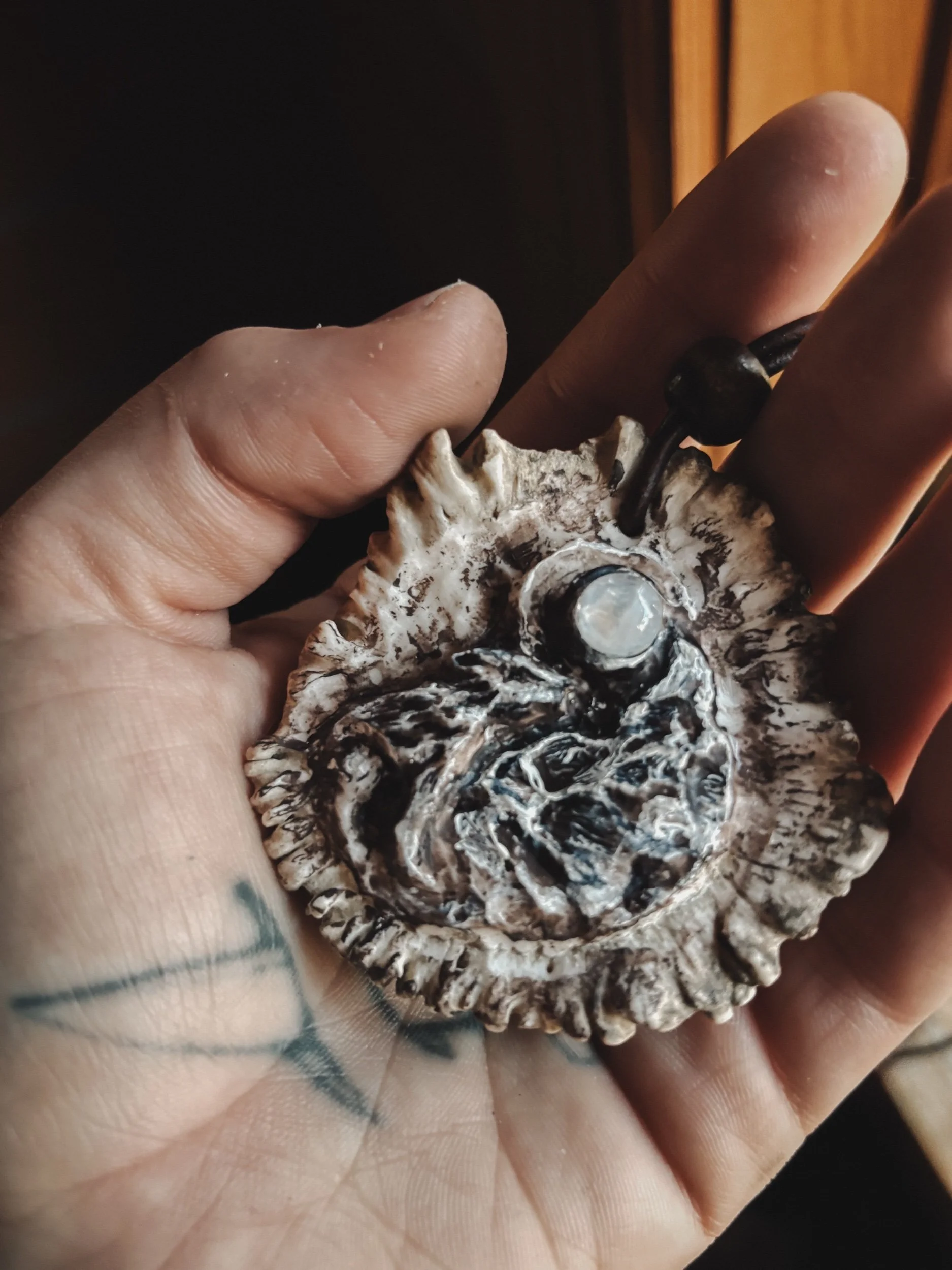 adjustable • rustic metal texture • natural crystal points
