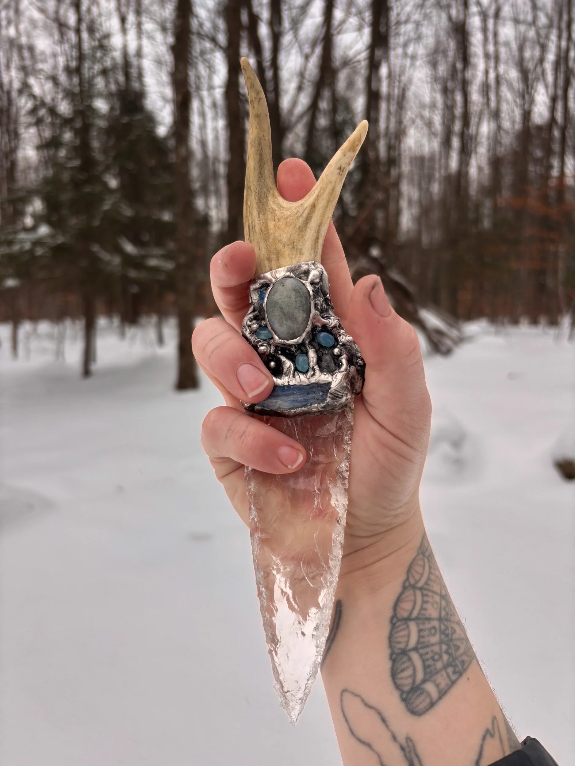 This hand-carved beaver skull is a tribute to the quiet architects of the wild. Creatures of threshold and transformation. Fern leaf and vine patterns spiral across the cranium, echoing the flowing paths of rivers and the weaving of branches. Each carved line honors the beaver’s mythic role as a builder between realms of land and water, seen and unseen.