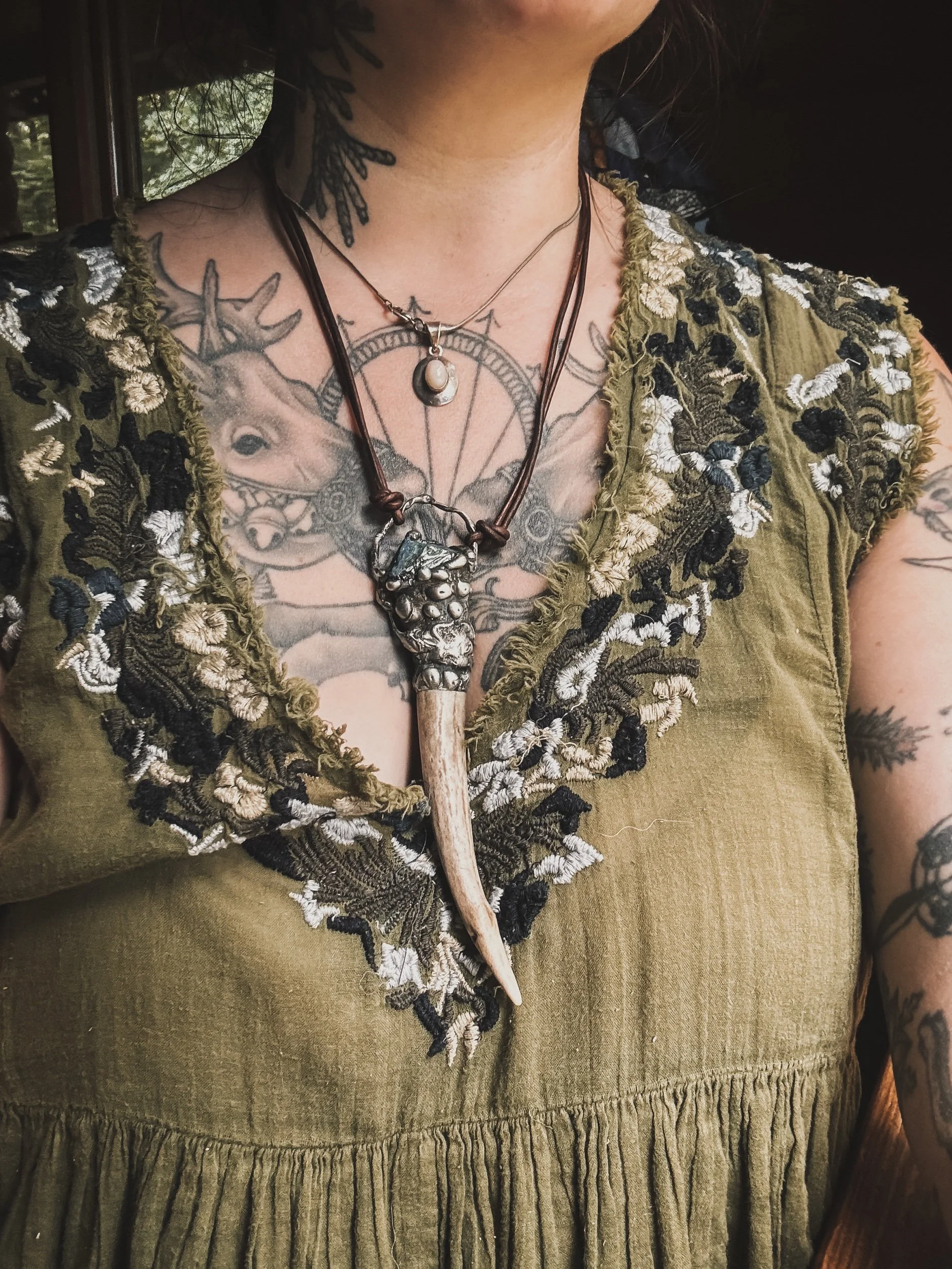 Each pair is handcrafted from real cat bone, antique Italian coral (1930s pre-ban) , and raw quartz points, united by hand-twisted copper wire and chain. These materials were chosen for their elemental harmony: coral for life and blood, bone for death and structure, quartz for spirit and clarity.