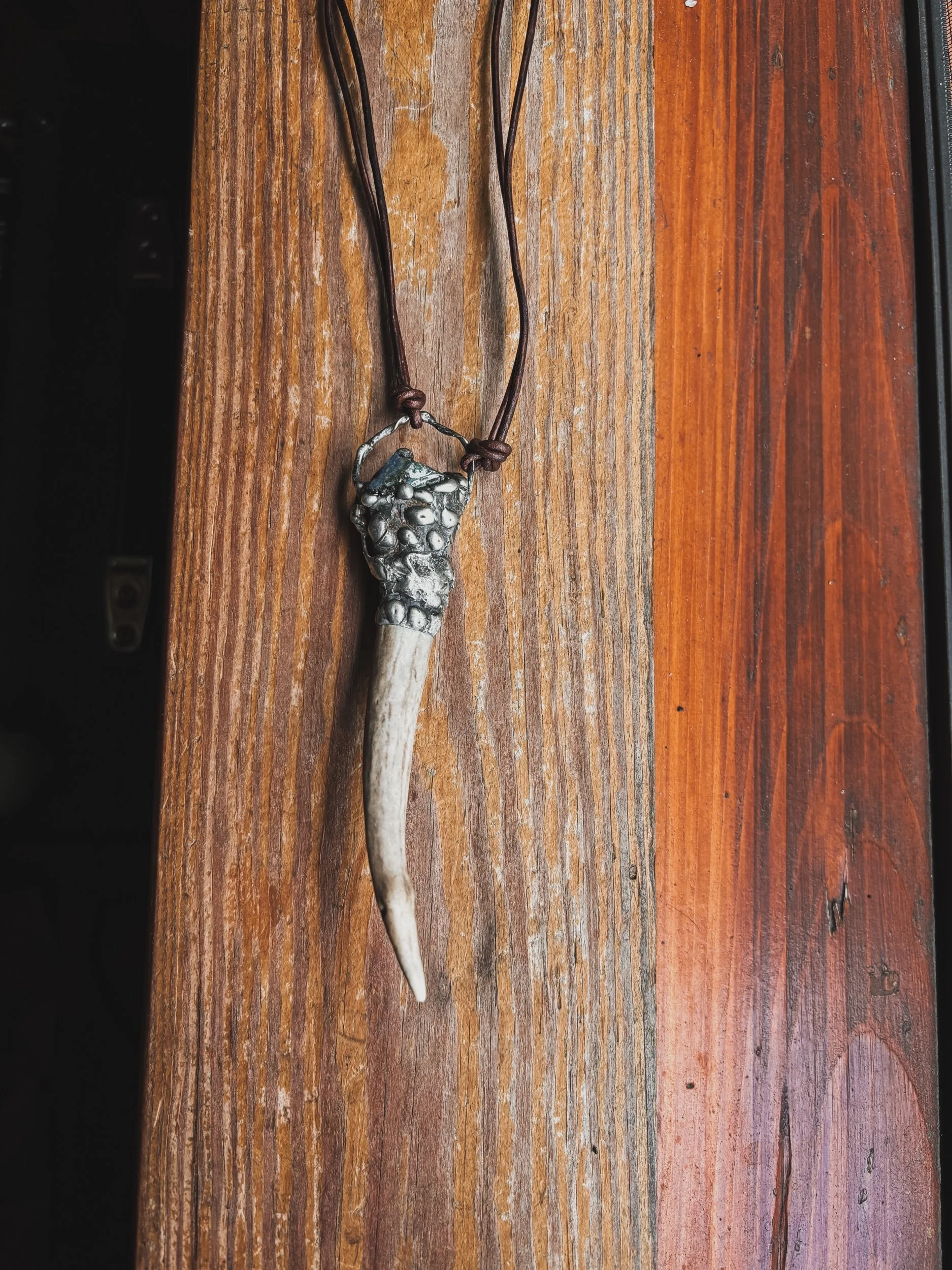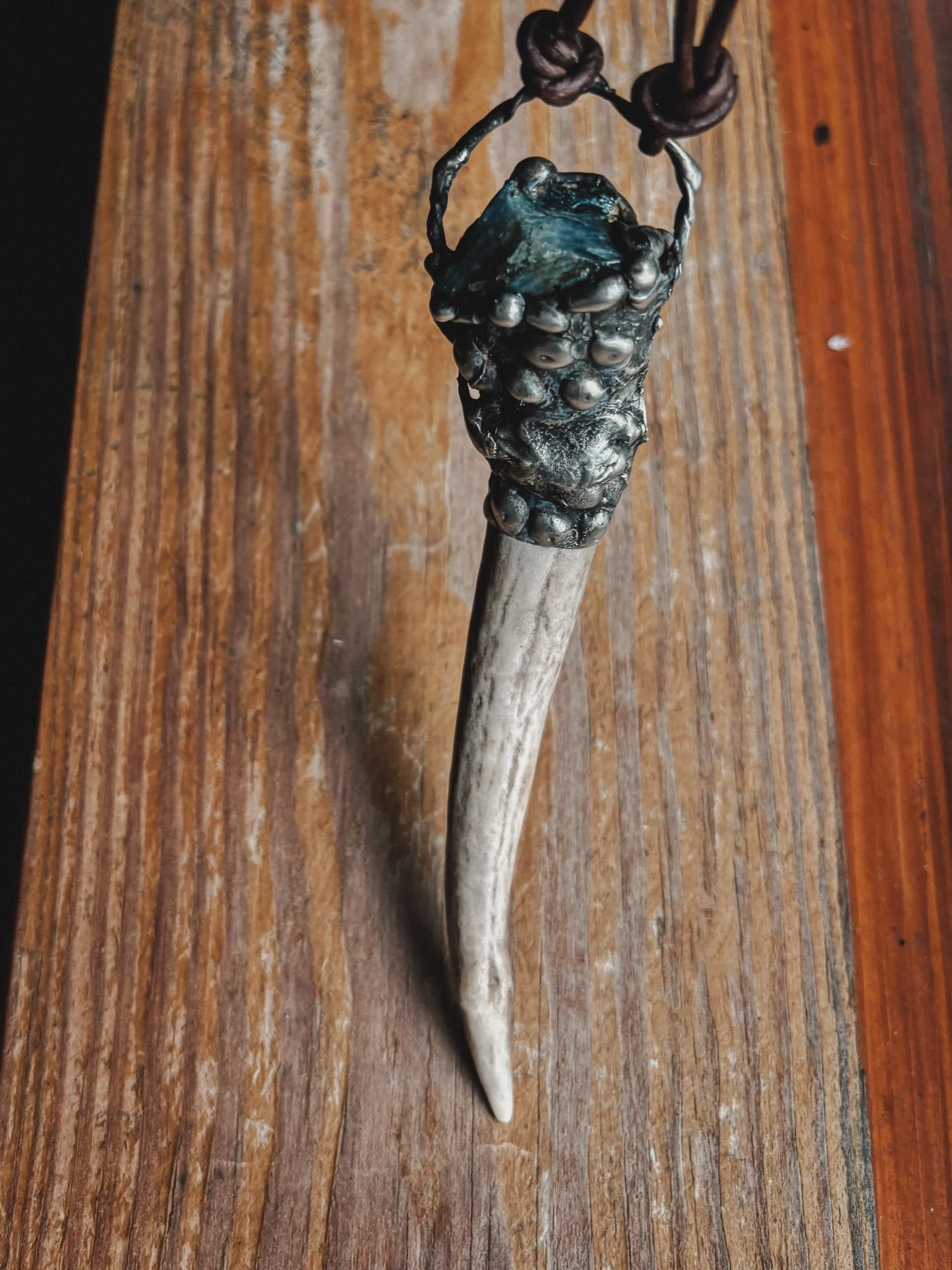 Forged in copper and flame, Bloodroot earrings hold the essence of three realms: bone, coral, and crystal. Bound together in balance.