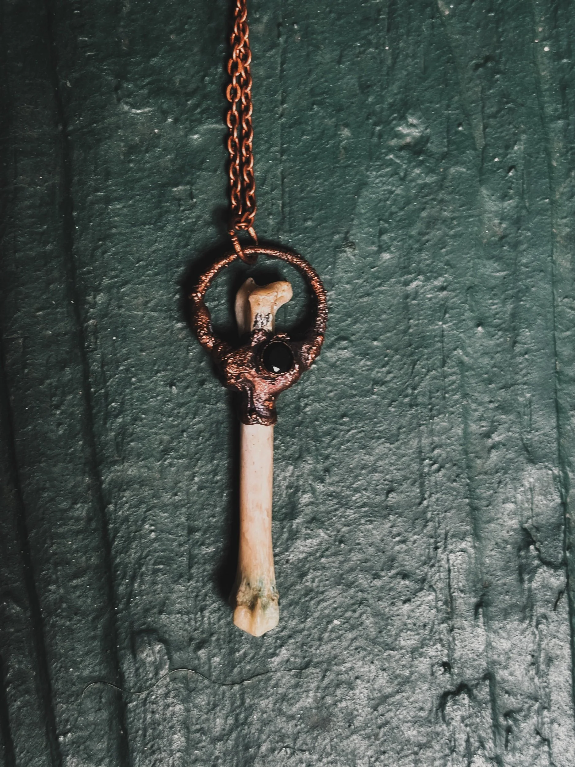 Each element was chosen for its organic harmony — the bones for mortality and wisdom, agate for grounding and emotional balance, and wood for connection to the living earth.