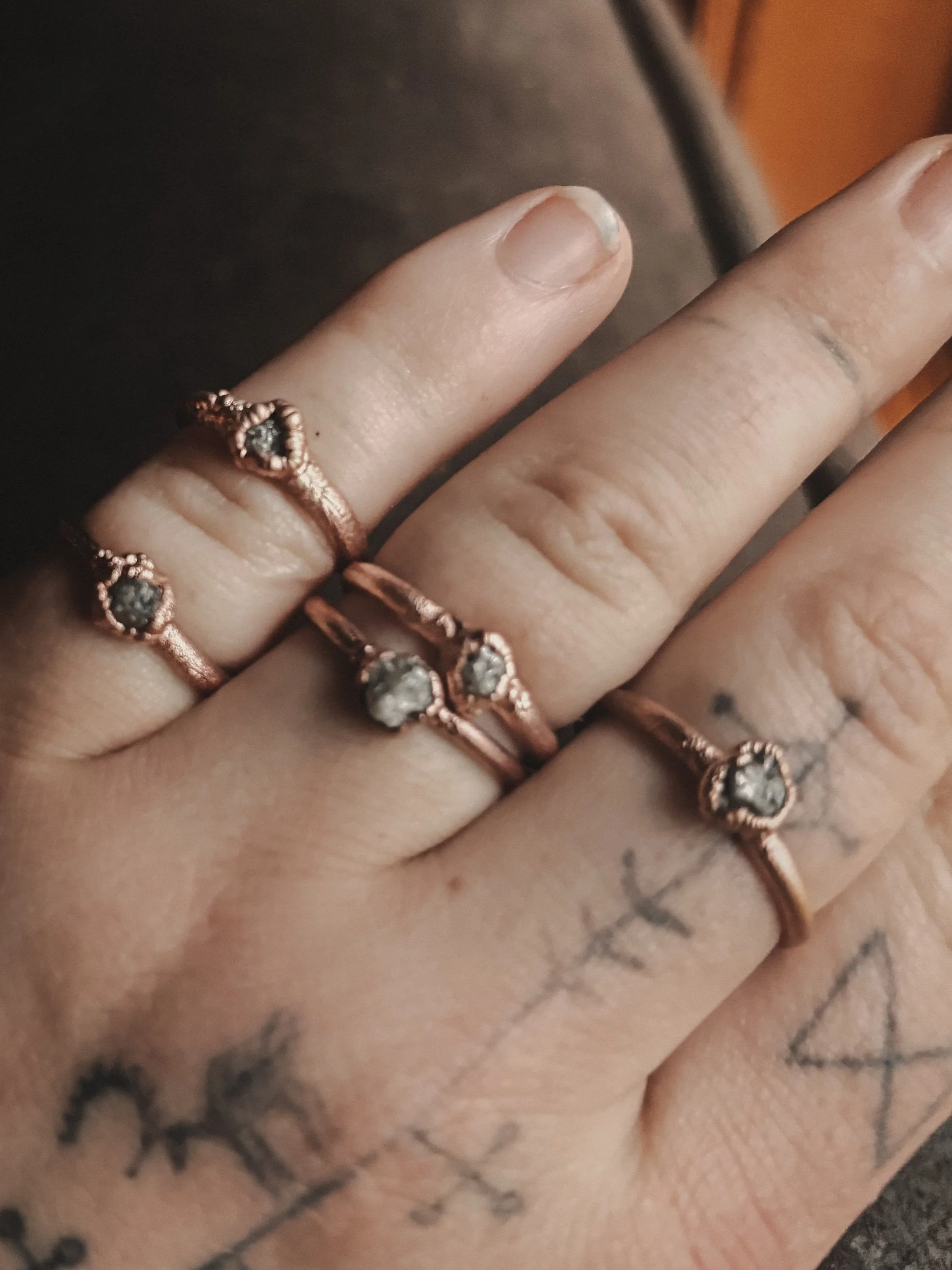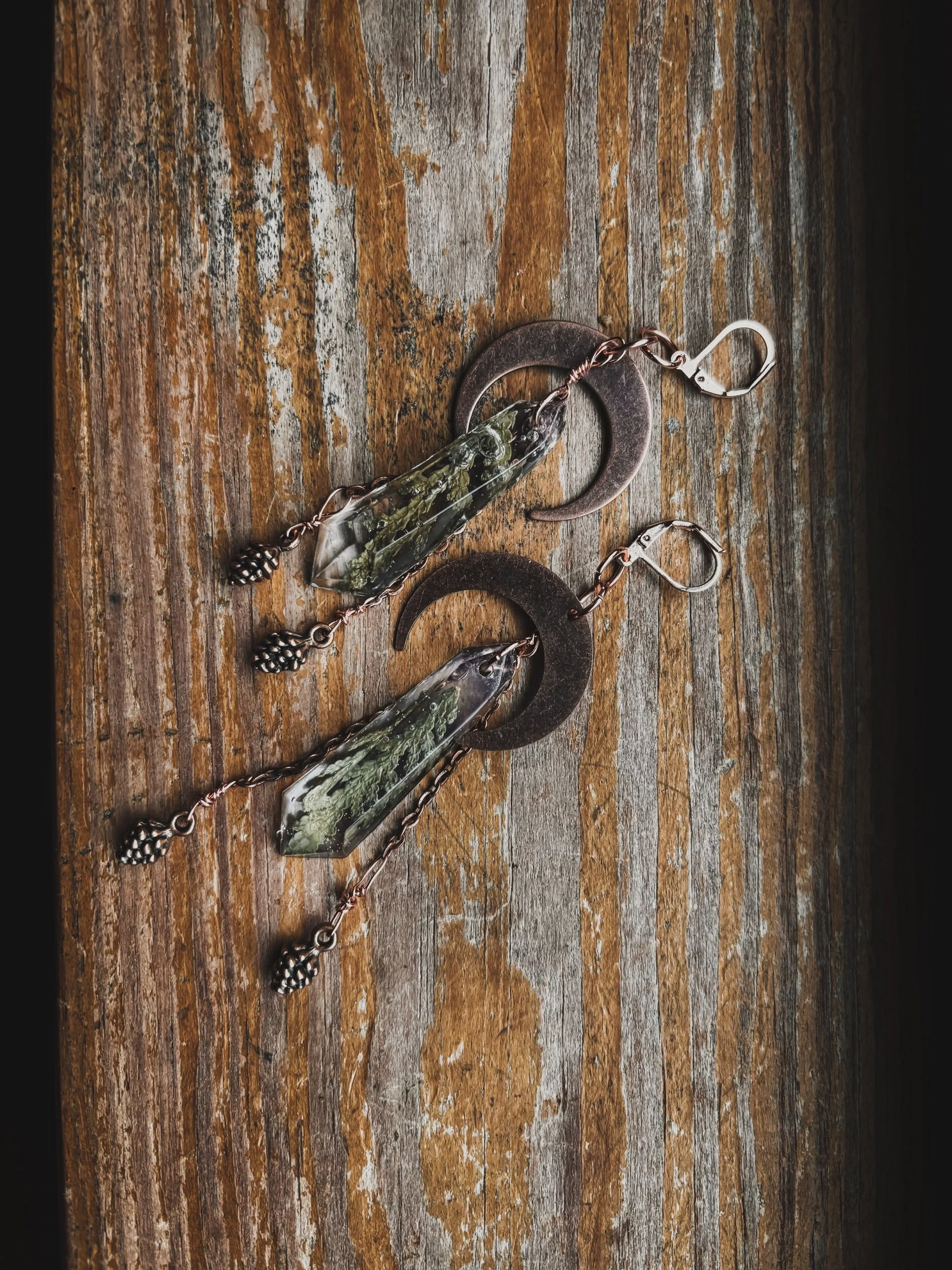 Opalite reflects shifting tones of blue, violet, and warm gold depending on the light. The moonstone adds a soft glow and subtle color flash, while the antler brings a grounded, natural texture to the handle.