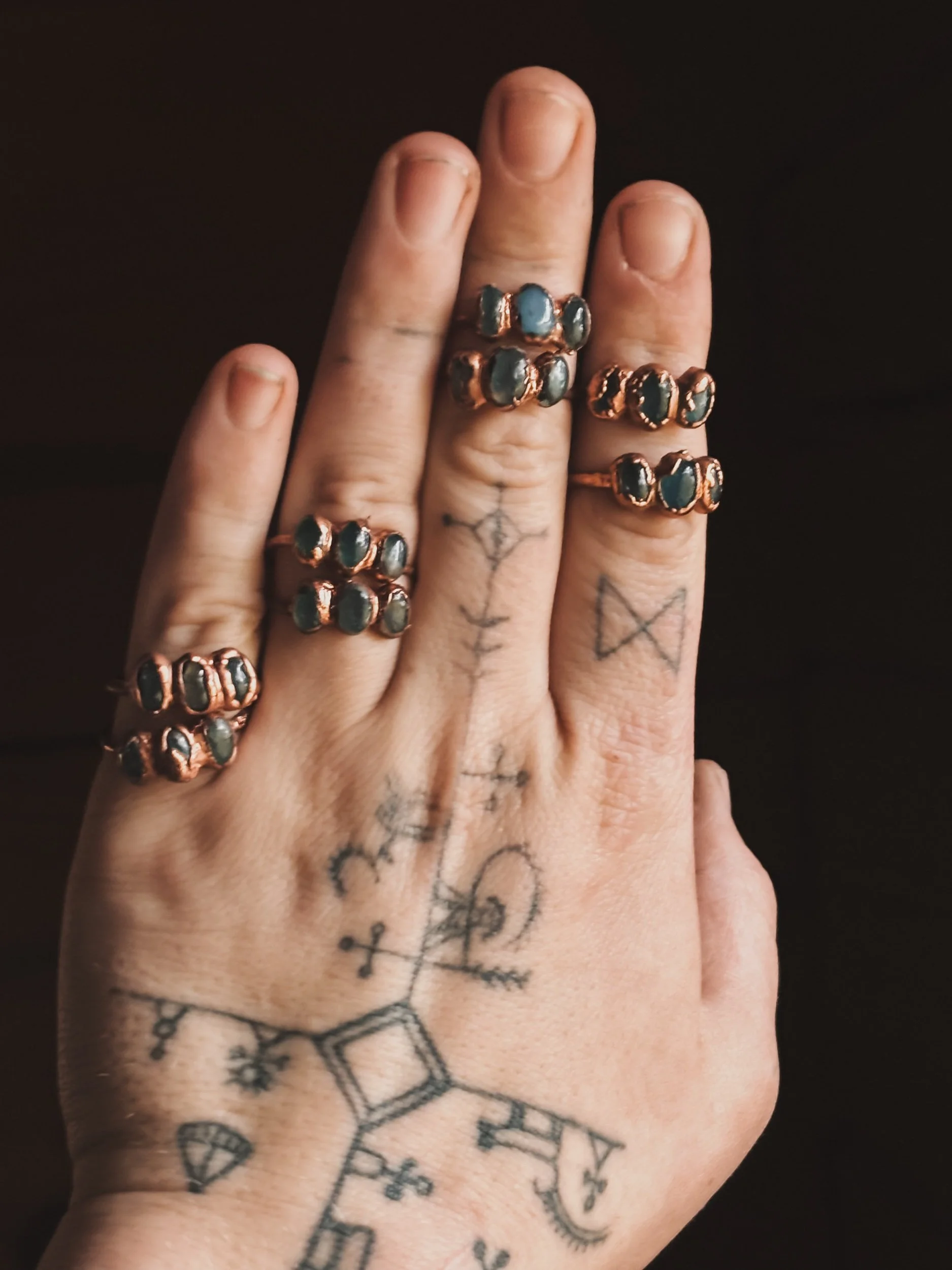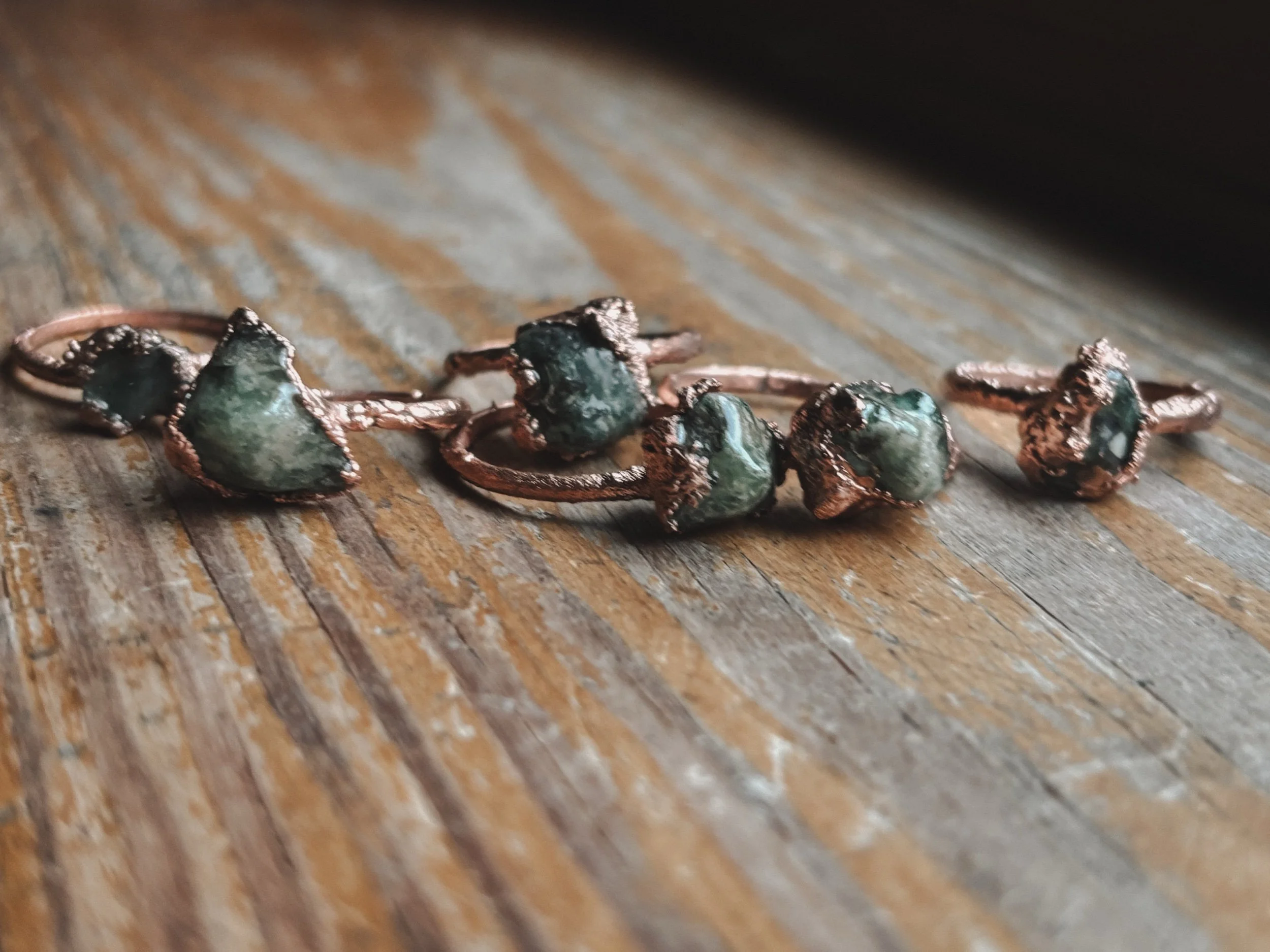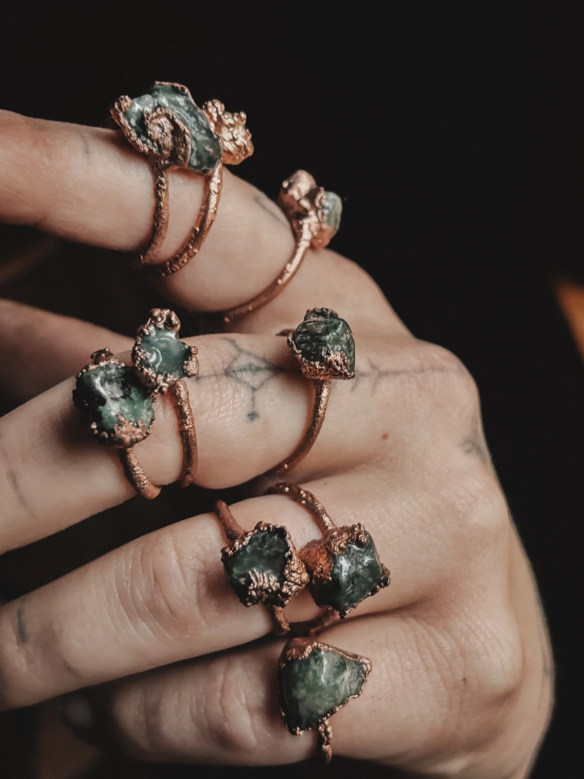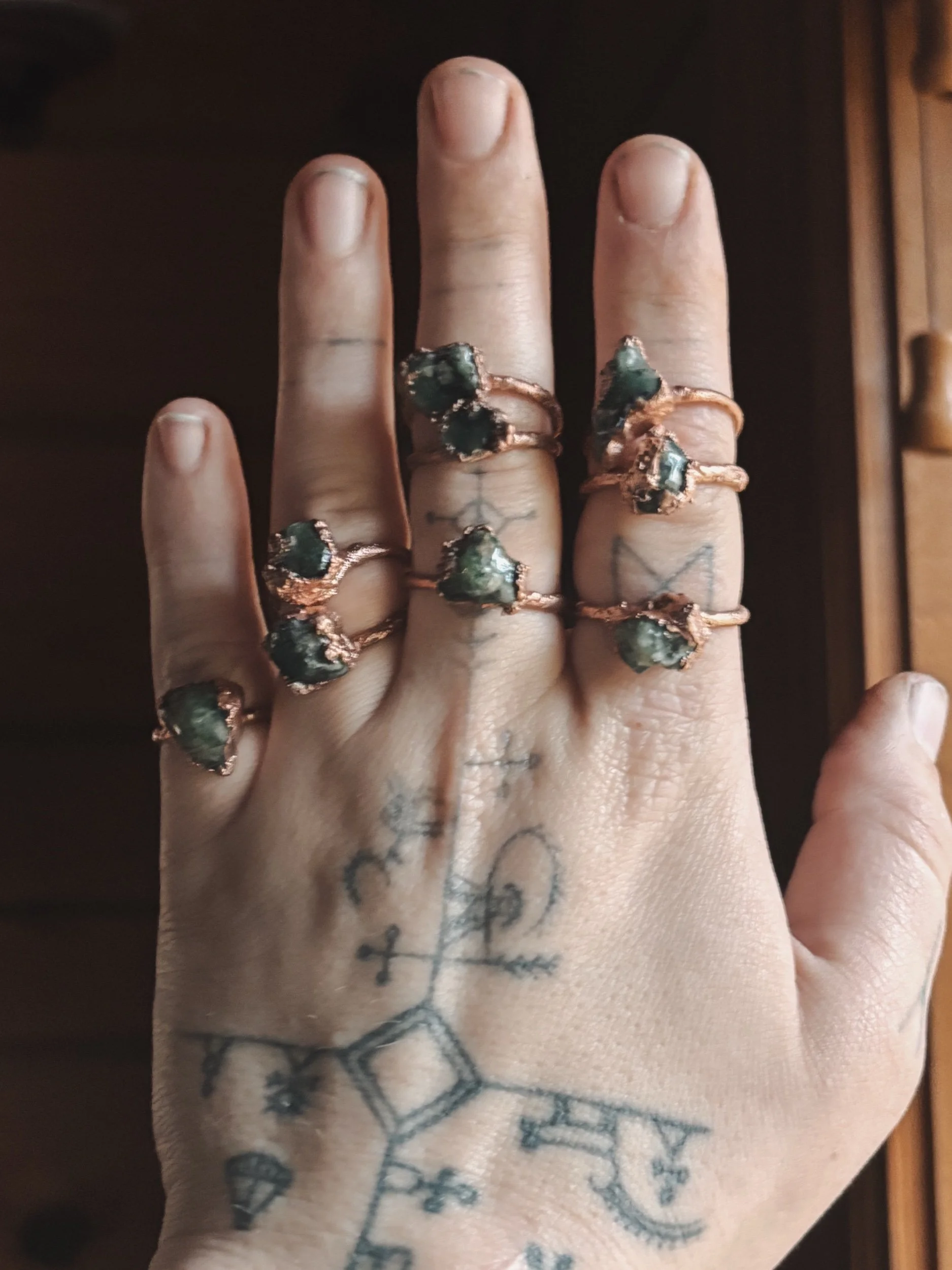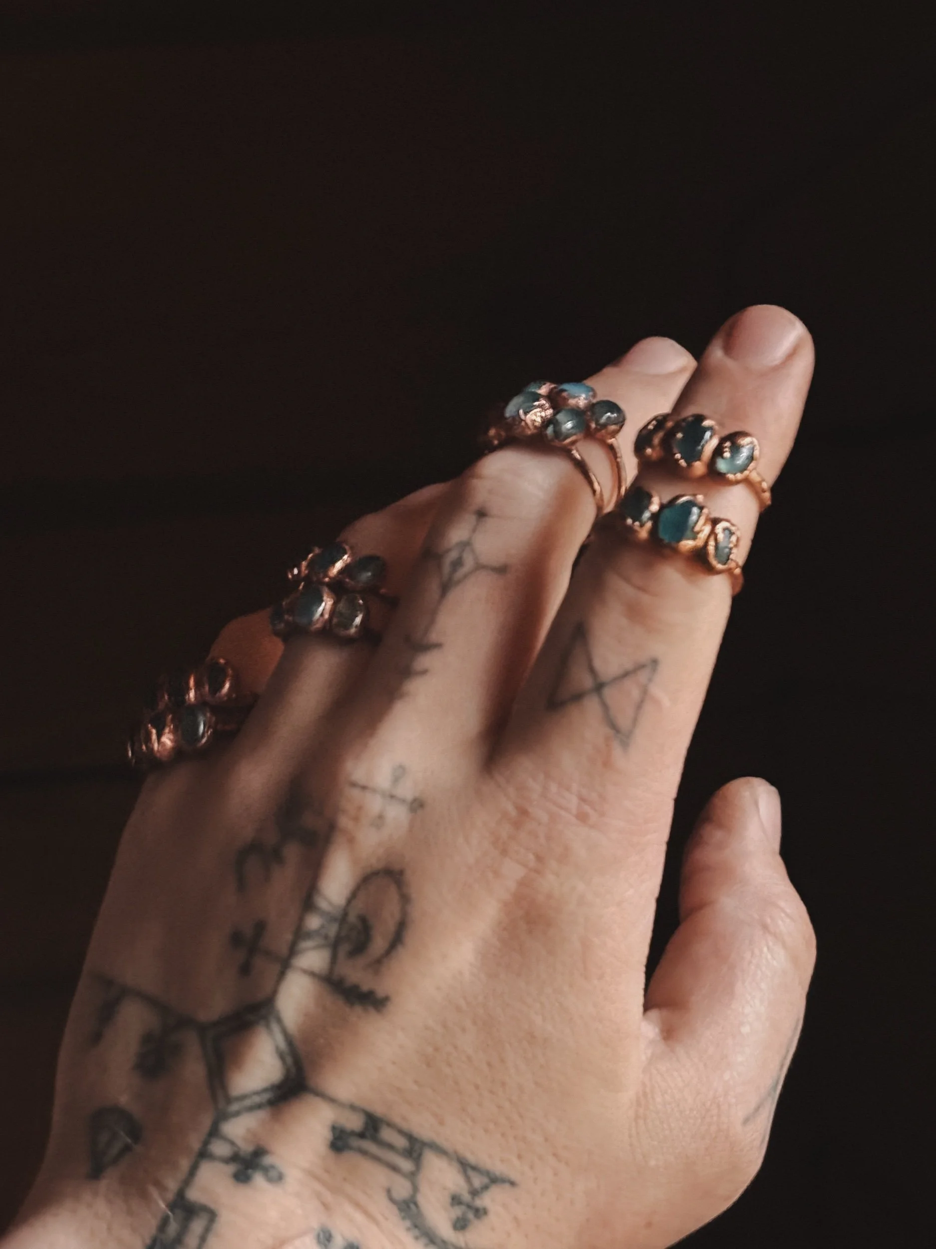 Categories: All Menu Category Cuffs Earrings Necklaces Rings Merch Gift Card Decor All Jewelry Collection Siren Love spell Banisher Skádi Forest Armor Enchantress All / Menu / Category / Quick View Electroformed Pearl Ring • Triple Freshwater Pearl Copper Ring $42.00 Quick View Raw Emerald copper ring $52.00 Quick View Woodland Pearl Ring • Copper and Pearl Stacking Ring • Ethereal Nature Jewe $42.00 Quick View Blue chalcedony electroformed stacking rings $38.00 Quick View Solitary Flame – Electroformed Garnet Ring (Size 6.5) $72.00 Quick View Cinderguard $64.00 Quick View Topographer ring size 10 $70.00 Sold Out Quick View Witchfang - Amethyst spirit quartz dusters $125.00 Sold Out Quick View Coyote tooth + carnelian ring size 5.5 $45.00 Quick View Copper armor ring size 9 $60.00 Quick View Copper armor ring A size 8 $60.00 Quick View Triple sapphire ring size 8.5 $60.00 Quick View Sapphire curved ring size 11 $60.00 Quick View Labradorite ring size 6 $45.00 Quick View Ice peaked mountain ring size 10.5 $95.00 Quick View Herkimer diamond and sapphire chevron bridal set size 7.75 $120.00 Quick View Garnet double band ring size 10.5 $60.00 Quick View Garnet and smokey quartz ring set size 7.5 $110.00 Quick View Frigg ring size 8.5 $120.00 Quick View Emerald ring set size 9 Sale Price: $90.00 Original Price: $120.00 Sale Quick View Aurora ring size 7.5 $120.00